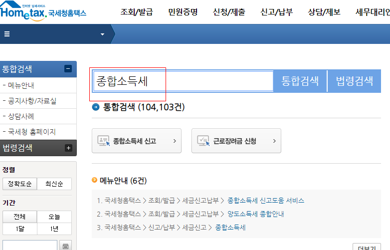위에 국세청 홈페이지에 들어가시면 홈택스에서 종합소득세 신청 서류 및 환급 방법, 그리고 인터넷 신청으로 쉽게 종합소득자 세금 신고 완료 할 수 있습니다.