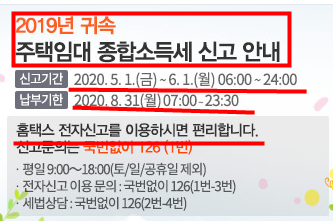 2019년 귀속 주택임대 종합소득세도 신고해야 되는 거 아시죠 신고기한은 6월 1일까지고 나쁜 8월 말일까지입니다. 몰라서 깜빡해서 신청을 못 했다 이런 말은 변명 밖에 안됩니다 그러니까 꼭 잊지 마시고 종합소득세 신청해서 납부하시기 바랍니다.