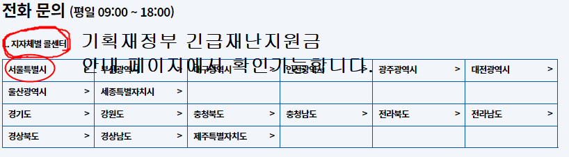 그리고 긴급재난지원금 일반 문의시에는 밑에 해당 정부기관 연락처를 참고바랍니다.