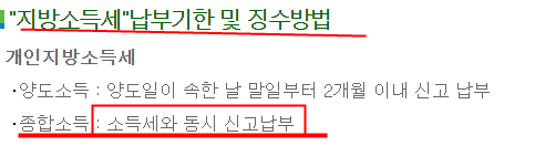 지방소득세 납부 기한 및 징수 방법은요 위에서도 설명해 쓰시오 종합소득세 신고할 때 지방소득세를 국세청 홈택스에서 같이 편하게 신청하실 수 있습니다. 보통 5월 달에 지방소득세와 종합소득세를 신고 하고요 미 신고시에는 가산세를 내야 할 수도 있습니다