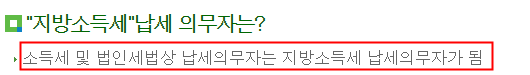 지방소득세는 누가 내느냐는 아주 간단하게 설명하면 소득세 및 법인세법상 납세의무자예요,가세 대상이 개인지방소득세 법인지방소득세로 나누는데요