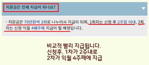 - 지원 내용은 70만원씩 2개월, 140만원 지원