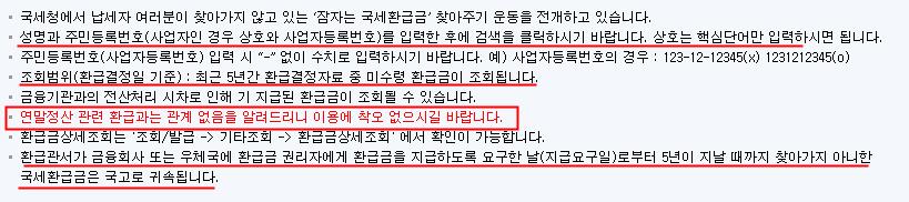 그리고 국세 환급금 찾기 조회는 연말정산 관련 환급과는 관게 없음을 알려드립니다.