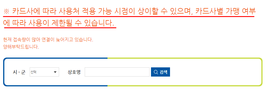 2. 카드사별 가맹 여부에 따라 제한이 될 수도 있다고 합니다.