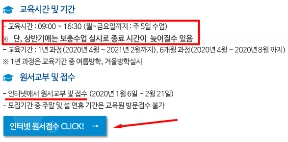 밑에 서울 남부 기술교육원 모집 과정, 신청 자격 등을