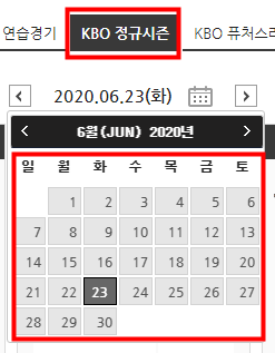 상기 화면처럼 2020 프로야구 중계 일정을