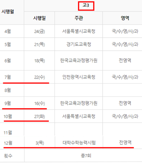 - 고1, 고2는 7월 모의고사 시행하지 않습니다.