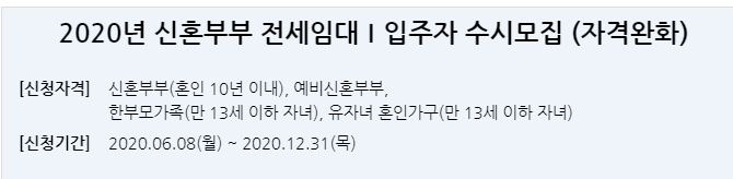 LH 홈페이지에서 신혼부부 전세임대 입주자 수시모집시 자격완화 공지사항을 확인해서 포스팅하였습니다.