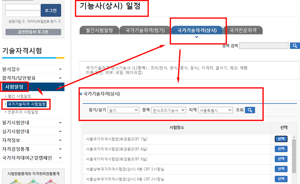 한식 조리기능사이 경우에는 정기시험만 있는게 아니라 상시로 언제든지 수시로 지원해서 시험을 신청 해석 보실 수 있습니다.