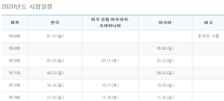 우선 2020 토픽 Topik 시험 일정은 상기와 같습니다. 나라별로 날짜가 다르니 확인하시기 바랍니다.