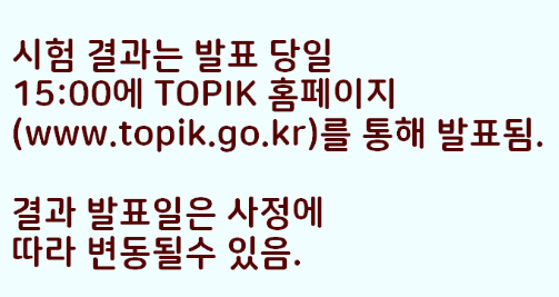 토픽 시험 결과는 발표 당일 15:00 토픽 Topik 홈페이지에서 발표된다고합니다.