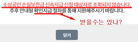'소상공인 손실보전금 신속지급 신청 대상자로 조회되지 않습니다.'라는 황당한 창이 떴습니다.