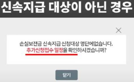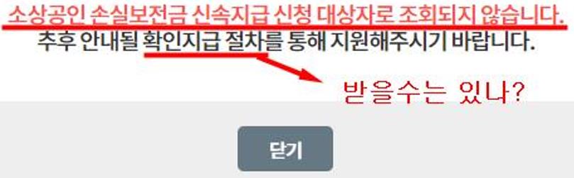 '소상공인 손실보전금 신속지급 신청 대상자로 조회되지 않습니다.'라는 창이 떴습니다.