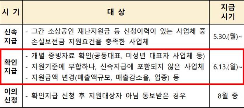 소상공인 손실보전금 확인지급절차는 6월13일부터 접수하기 시작합니다.