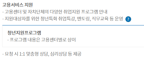 다양한 취업지원 프로그램 안내와 청년특화 취업특강, 멘토링, 직무교육, 1:1 맞춤형 상담, 심리상담 다양한 서비스를 청년들의 위해서 제공하고 있습니다. 필요하신분들은 꼭 혜택을 받으시길 바랍니다.