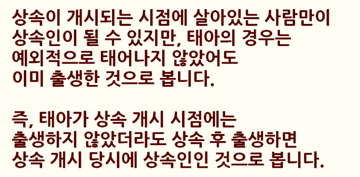 뱃속에 임신중인 태아도 상속인이 될 수 있는지에 대해서 알아봤습니다. 감사합니다.