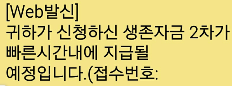 생존자금 2차 지급할 예정이라고 문자가 올겁니다.